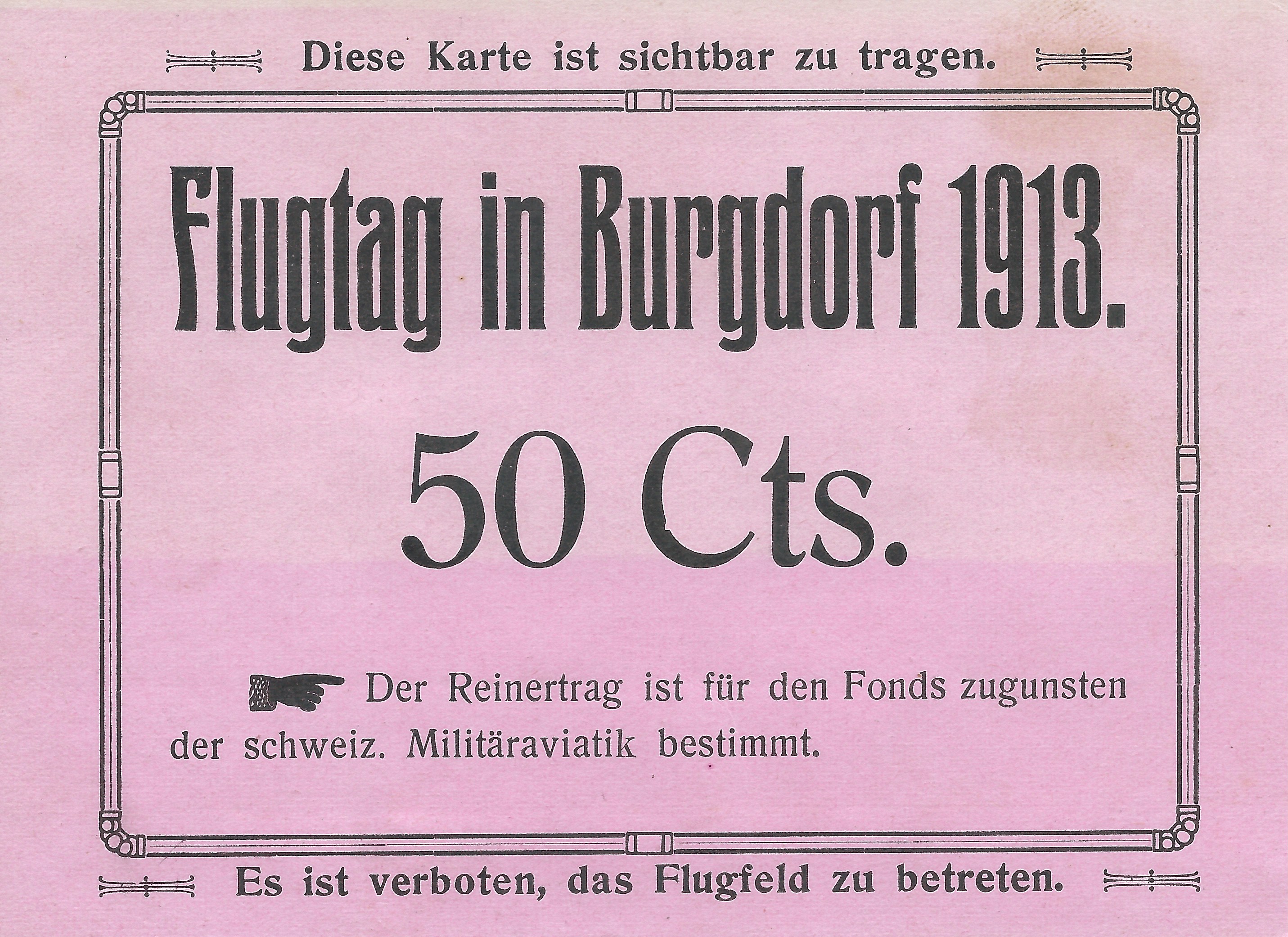 Die halbe Stadt war auf den Beinen. Zwischen Höheweg und Weissensteinstrasse wurde für die Landung eine Wiese gemäht. Ein Flugkomitee  unter der Leitung von Hauptmann Guggisberg sorgte für einen reibungslosen Ablauf. Der Erlös der Eintrittskarten und der Briefmarken mit der Aufschrift: ” Erste Flugpost Burgdorf-Bern”  kamen der Militäraviatik zugute. Total wurden Fr. 5500.- gesammelt. Grösse der Karte: 9 x 13 cm.