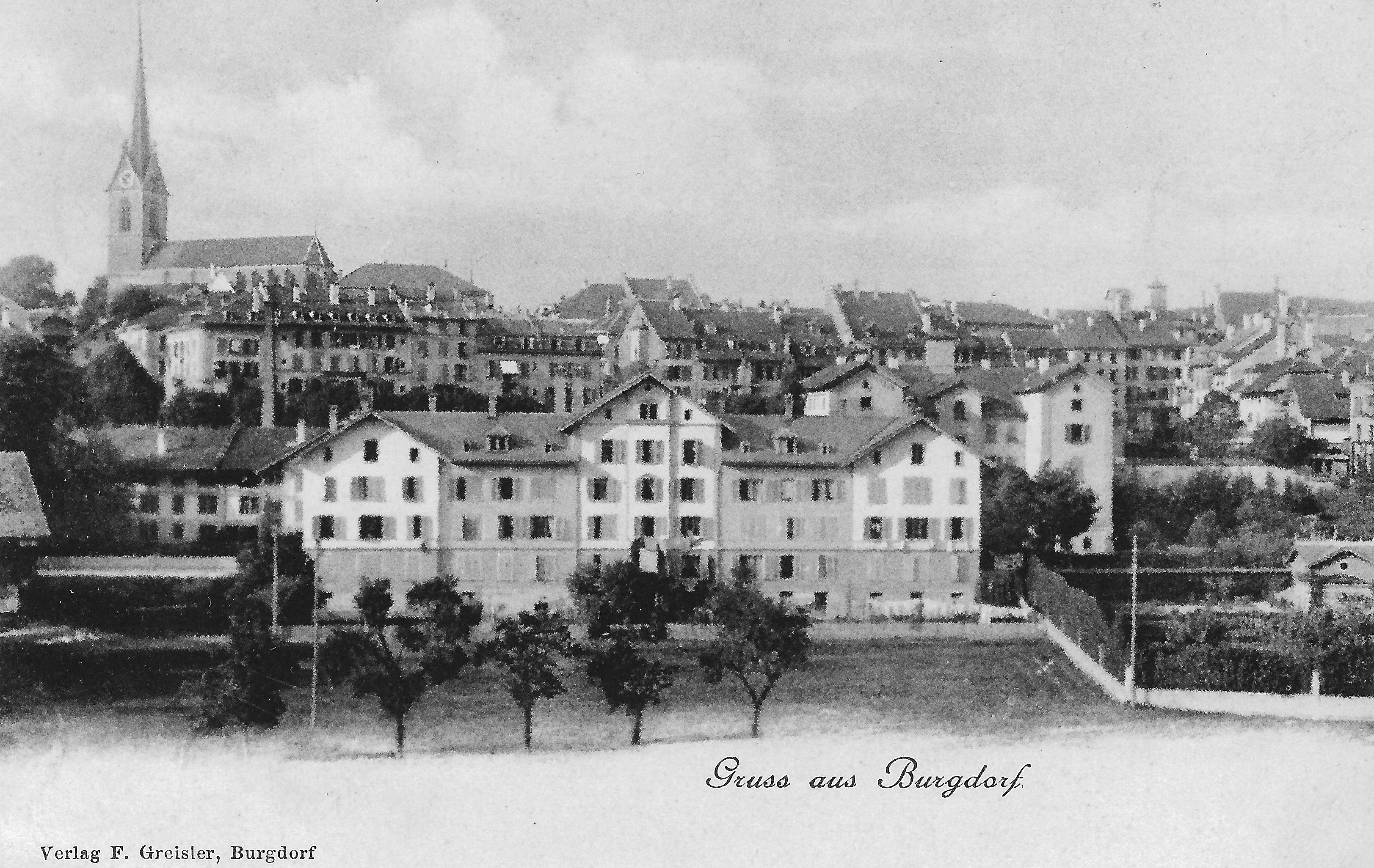 F.Greisler Burgdorf 1908Das Gebäude erbaute Familie Krähenbühl. Im Volksmund wurde das Haus “Klaviergraben” genannt, weil viele Lehrer und Musiker dort wohnten.