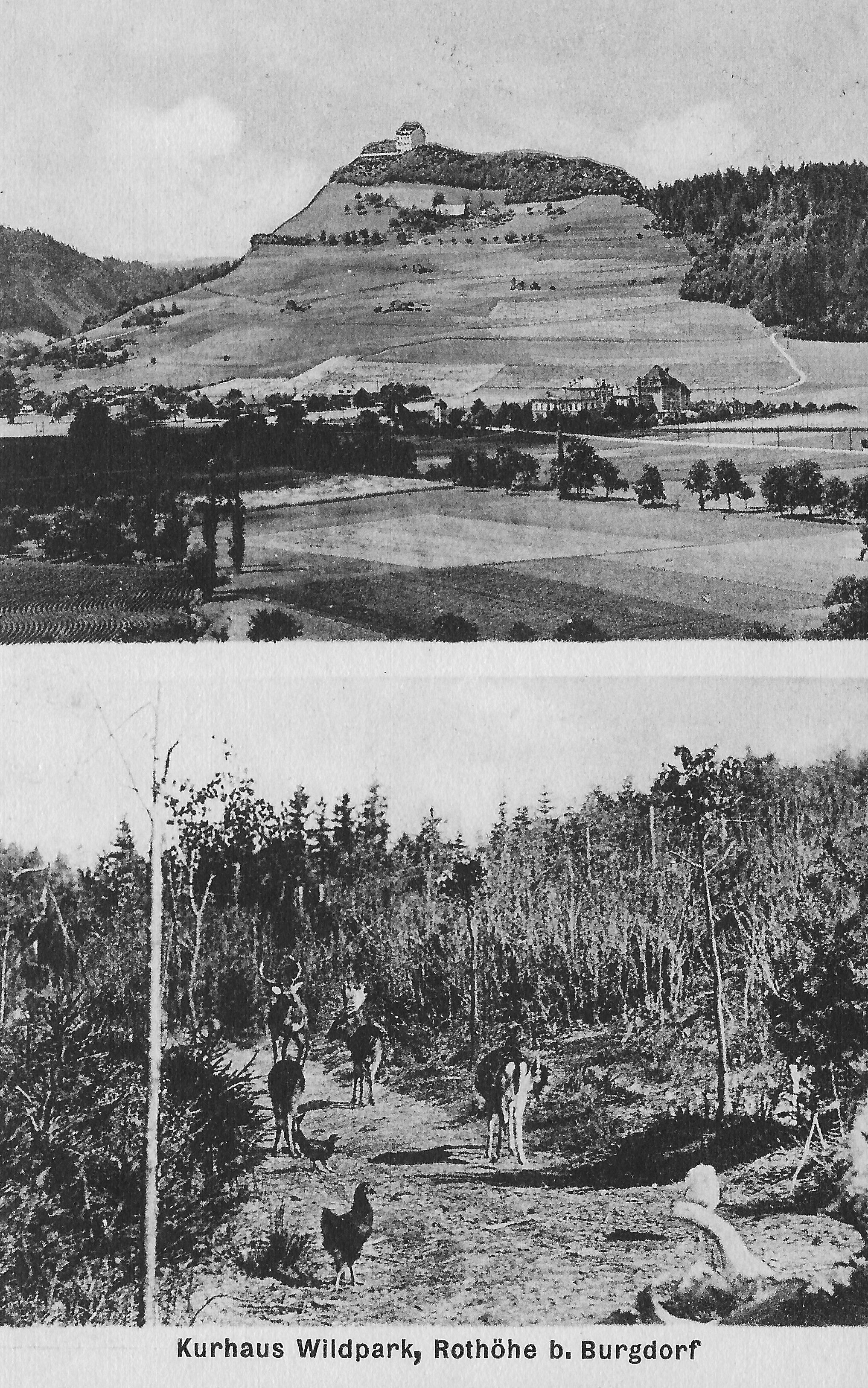 Ansicht der Rothöhe von Burgdorf aus. In der Mitte des Bildes das Spital.